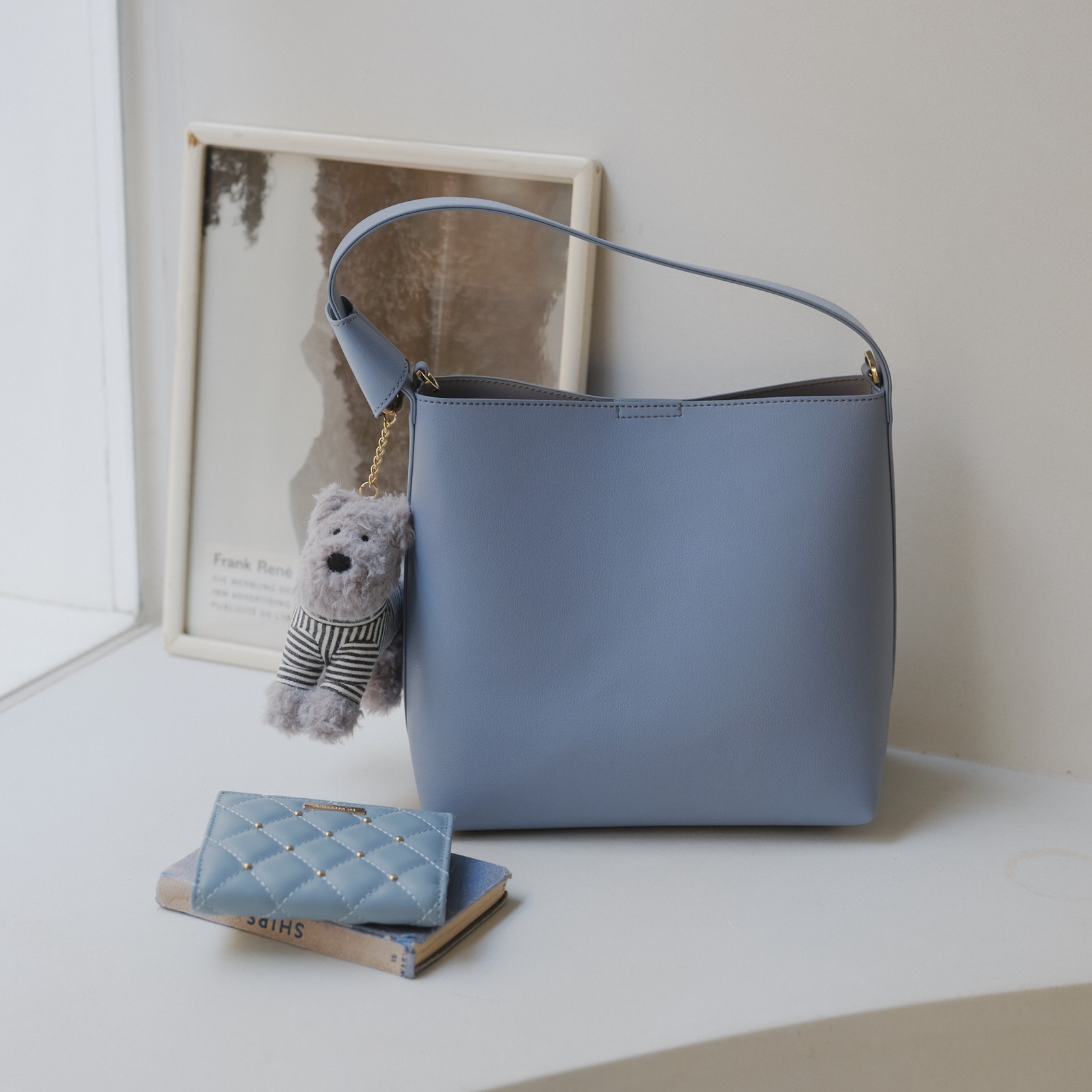サイドにお好みのチャームを付けて、カスタムを楽しめる4WAY仕様のショルダーバック。 無地のデザインは、世代を問わず使いやすく、日常からオフィスまで幅広く活躍します。 見た目はミニマルながら、フォルムや持ち方を気分に合わせてアレンジできるのが魅力。 内側には整理しやすいポケット付きで、マチもあるため収納力もしっかり。 落ち着いたデザインの中に、さりげない遊び心を。毎日のコーディネートに、そっと寄り添うバックです。
