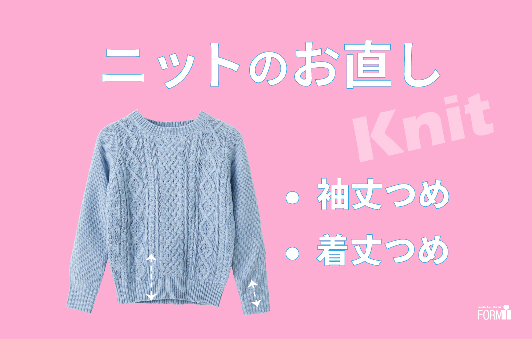 ニット製品も「袖丈つめ」や「着丈つめ」など、サイズ調整ができます。