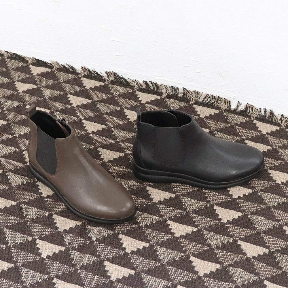 ほどよい厚みのソールで、足元に自然なバランスをもたらすサイドゴアブーツ。ボリュームが出すぎず、コーデになじむ設計です。弾力のあるアウトソールと肉厚クッションのカップインインソールが地面の硬さをやわらげ、ふわふわの履き心地に。ベーシックなデザインだからこそ、履き心地の良さが際立ちます。