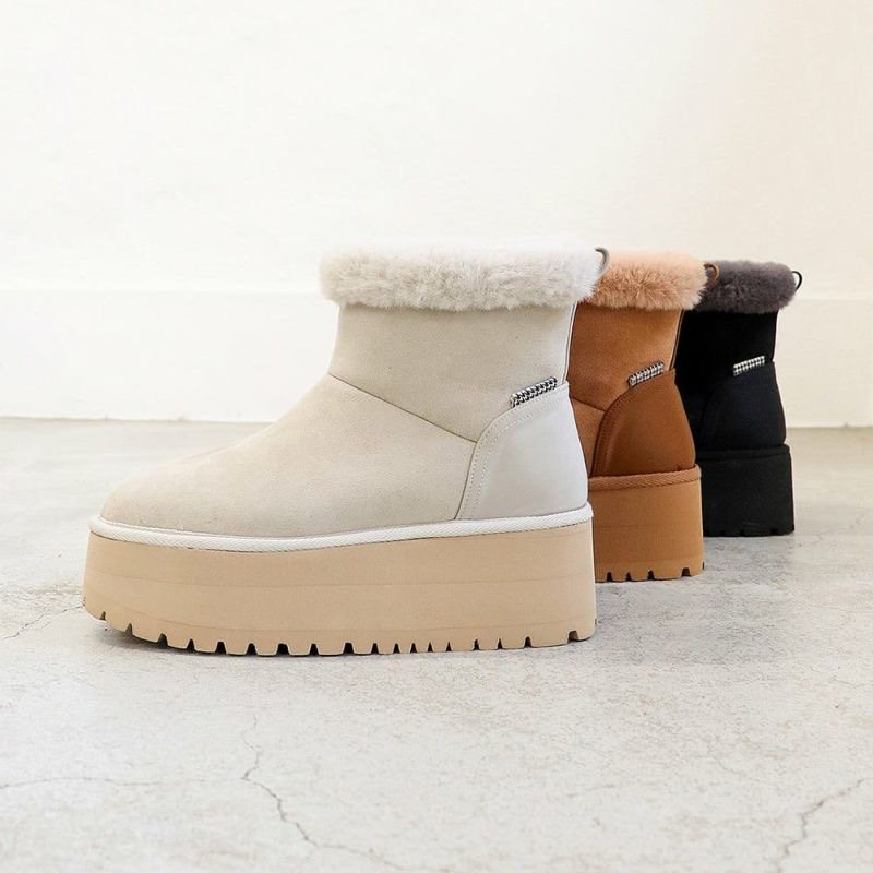 極厚の軽量ソールでボリュームたっぷりに仕上げたムートンブーツ。存在感のある足元を引き立てるため、デザインはあえてシンプルに。どこか90年代を思わせるような、懐かしくも新鮮な佇まいが魅力です。