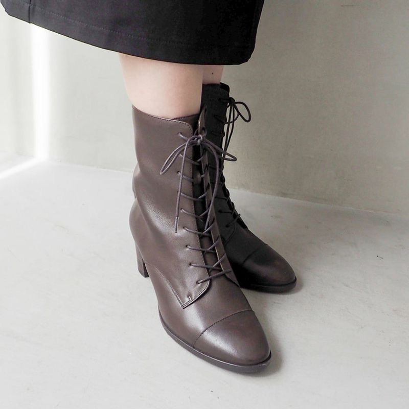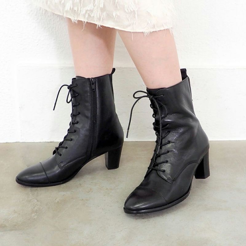本革の深みある質感と、すっきりとしたシルエットが際立つレースアップブーツ。足元に品とクラス感をプラスしてくれる、大人のための一足です。ミニマルなデザインとヒールアップスタイルで、きれいめな着こなしにもなじみやすく、履くほどに深みを増すレザーの表情がスタイルに奥行きを与えてくれます。トップにはゴムをあしらい、締め付け感なくフィット。また、ソフトレザーならではのやわらかな足あたりも魅力です。さらに、晴雨兼用という頼もしさ。高級感と実用性を兼ね備えた、日常に寄り添うブーツです。