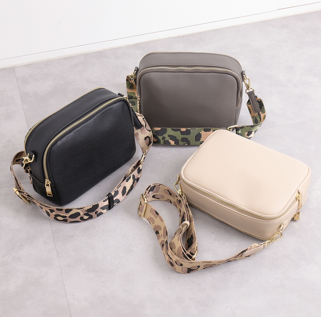 アクセントになるレオパード柄ワイドストラップは、バッグ本体と同色のシンプルなショルダーストラップとの2種類で付け替えて楽しめます(^O^)!
