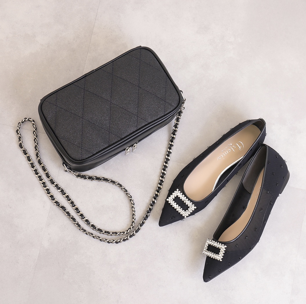 ビジューバックル フラットパンプス