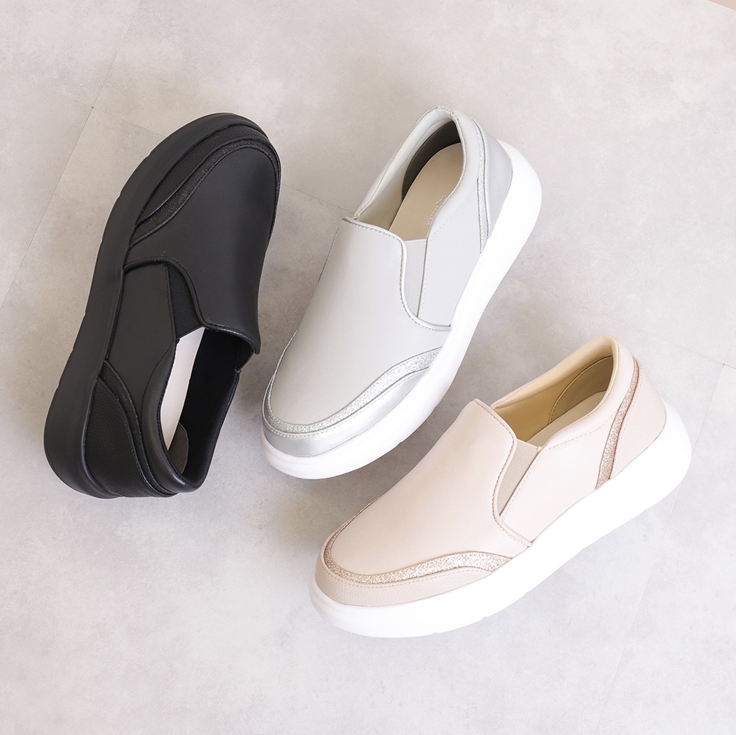 指先から甲周りまで足が触れる部分全てのクッションにこだわった、足当たりふかふかの軽量スリッポンです(*´꒳`*)