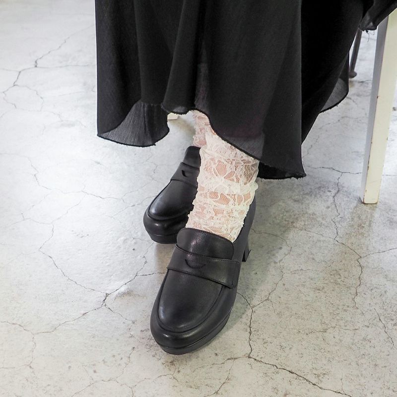 安定感のあるストームヒールで、足もとにほどよいボリュームをプラス。しっかりスタイルアップも叶えてくれるローファーパンプスです。