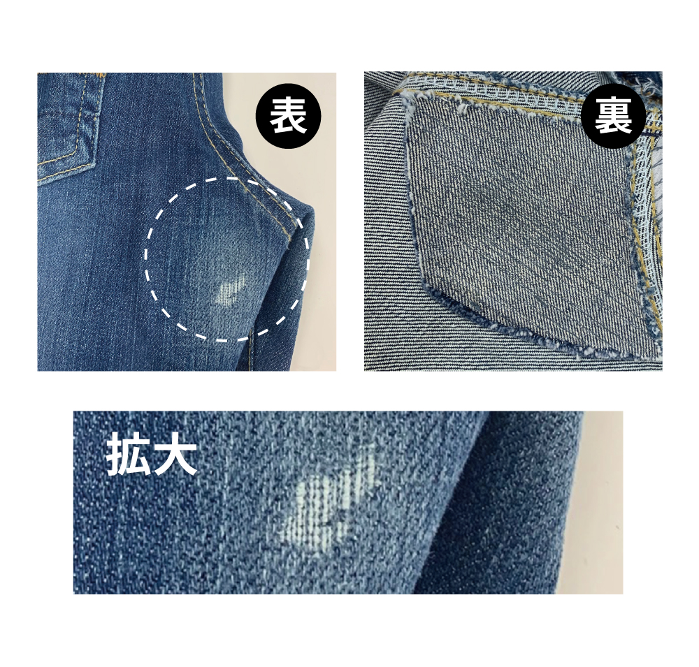ダメージジーンズのヒザの破れが広がってきたり、ヒップや内股の生地が薄くなってきても諦めないでお気軽にご相談ください。
