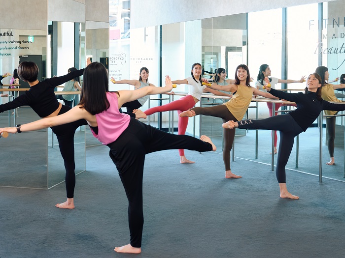 CARDIO BARRE fitのプログラムはバレエの動きや有酸素運動、筋トレ、ストレッチなどで構成されています。