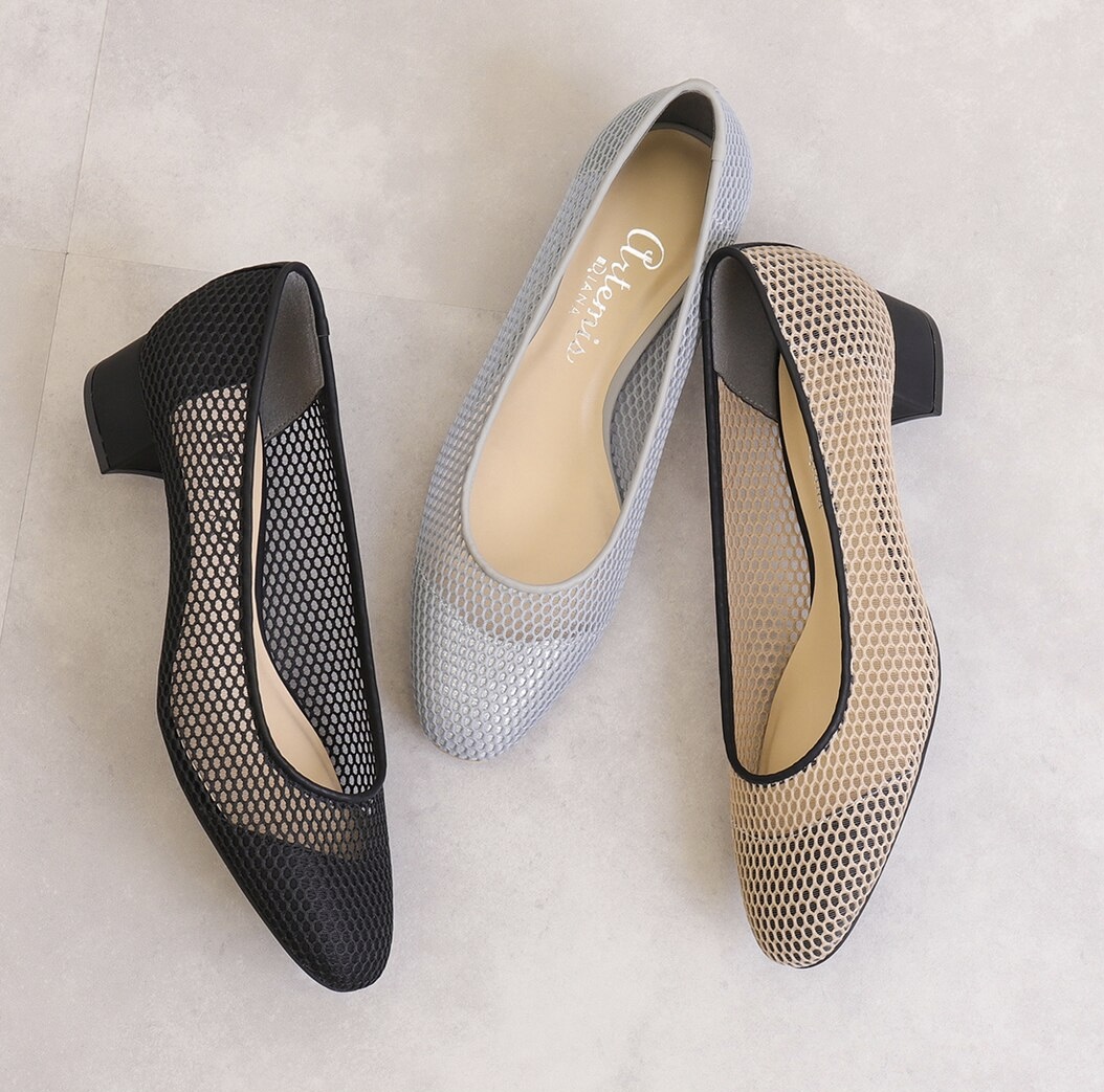 涼しげなメッシュ素材がトレンド感とカジュアルな肌見せを叶えるパンプス♫