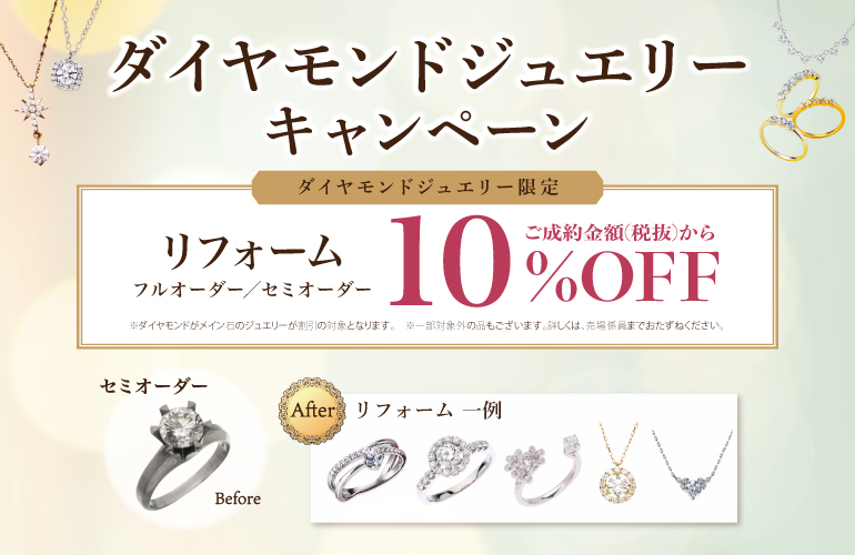期間中、ダイヤモンドジュエリー限定でセミオーダー・フルオーダーが10%OFF!