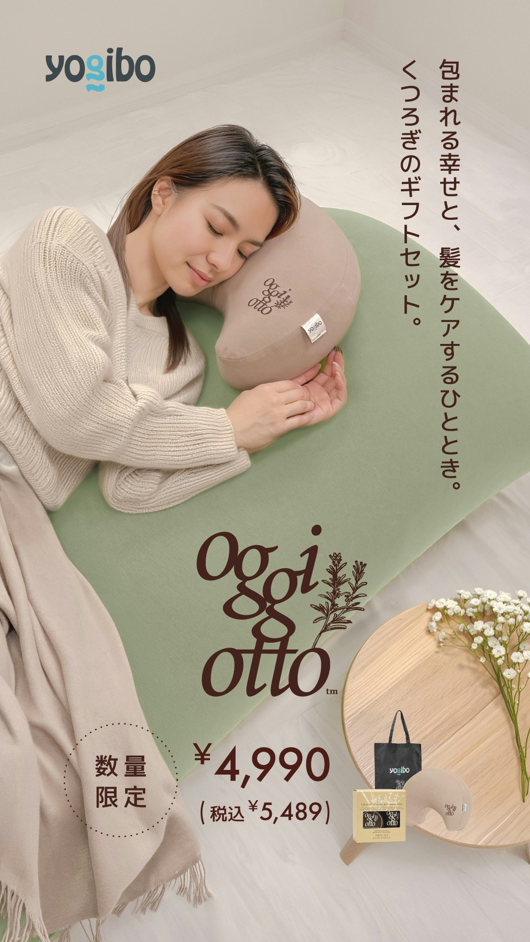 Yogiboは、トータルビューティーブランド「oggi otto(オッジィオット)」とのコラボレーションによる数量限定ギフトセット『Yogibo × oggi otto Relax gift』を、2026年4月24日(金)より販売開始いたします。