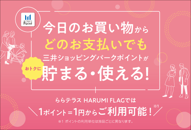 - どのお支払いでも三井ショッピングパークポイントがおトクに貯まる・使える!