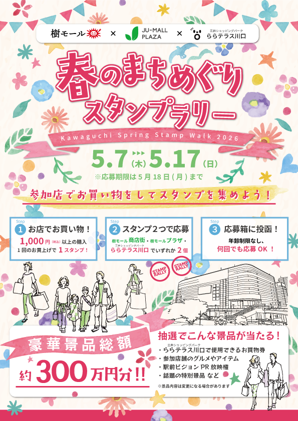 - 【予告】【樹モール商店街×樹モールプラザ×ららテラス川口】春のまちめぐりスタンプラリー開催!