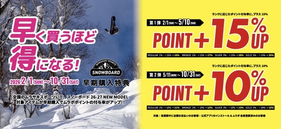 早いほどおトク!! スノーボード早期購入特典 2026-27 - ムラサキスポーツ