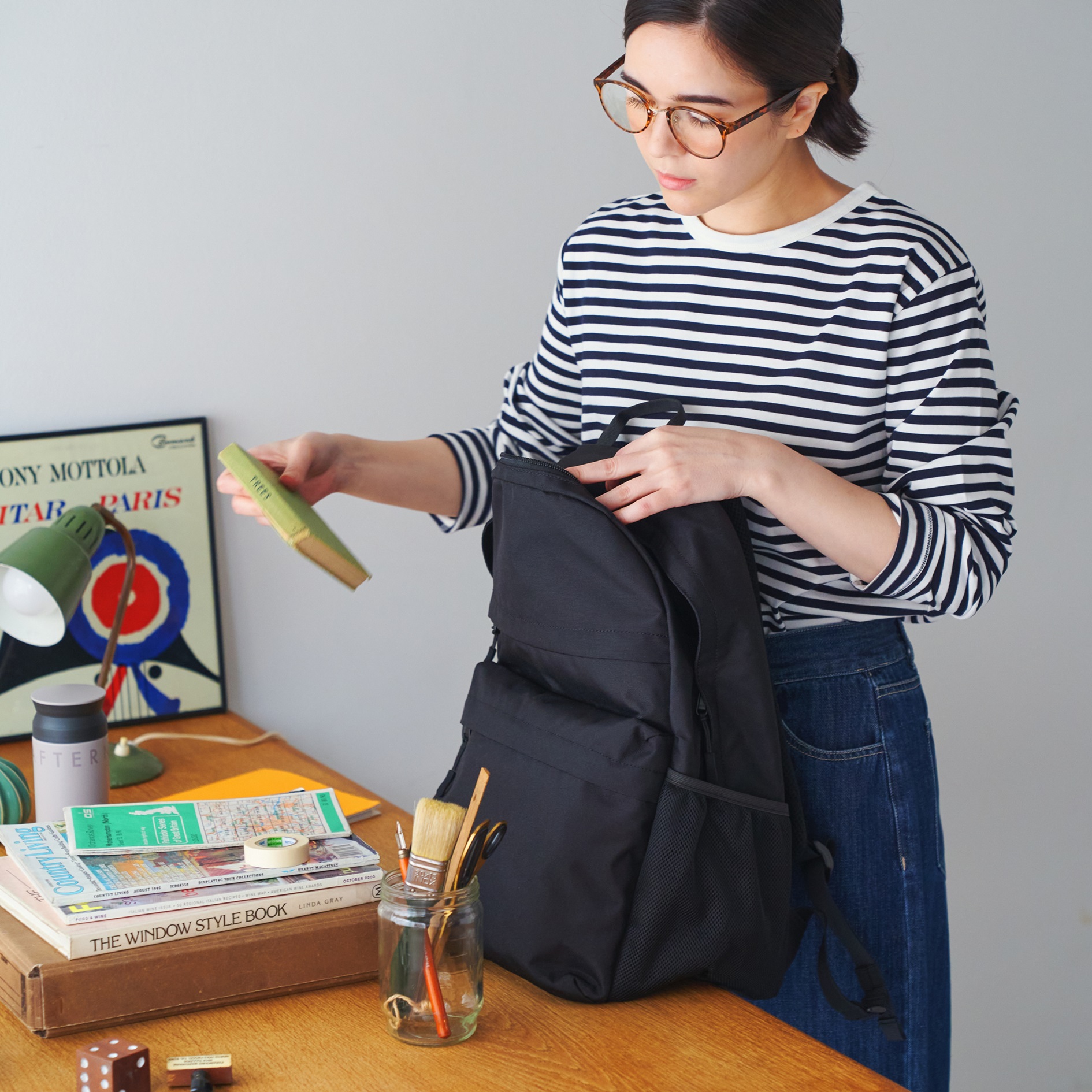 はっ水加工を施したカジュアルな生地を使用しているので、気軽に使っていただけます。