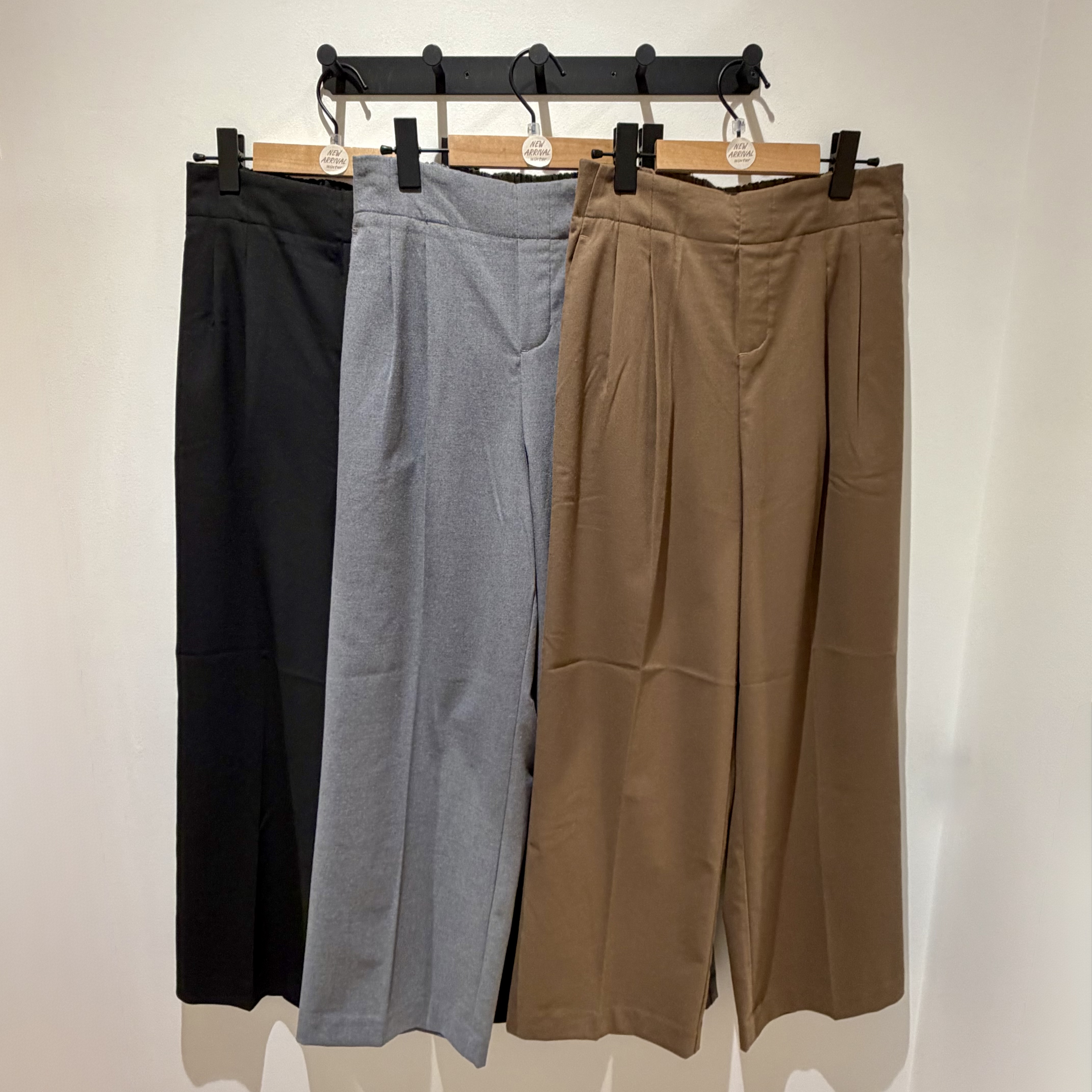 ウエストまわりがスッキリとしてみえるタックデザイン、センタープレスで脚長に魅せる程よいワイドシルエット♫