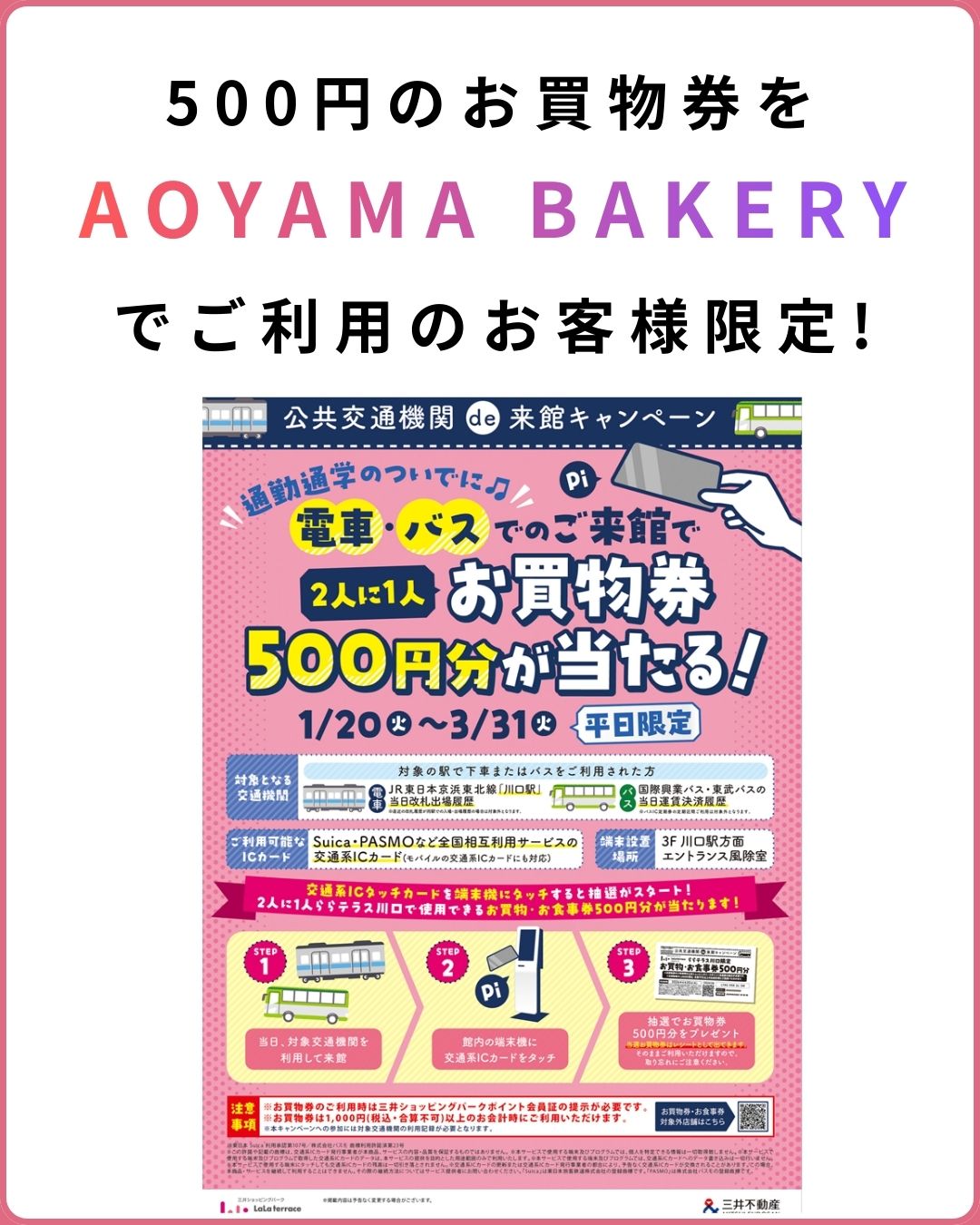- 500円のお買物券をあおやまベーカリーでご利用のお客様限定!!