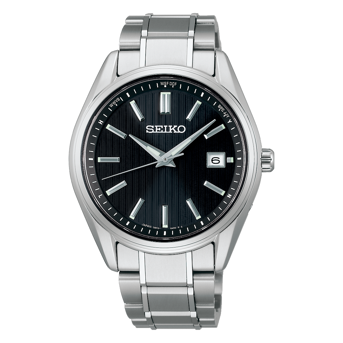 シンプルで視認性の高いデザインに、ソーラー電波機能を搭載したメンズの腕時計。ビジネスシーンでも使いやすい一本です。
