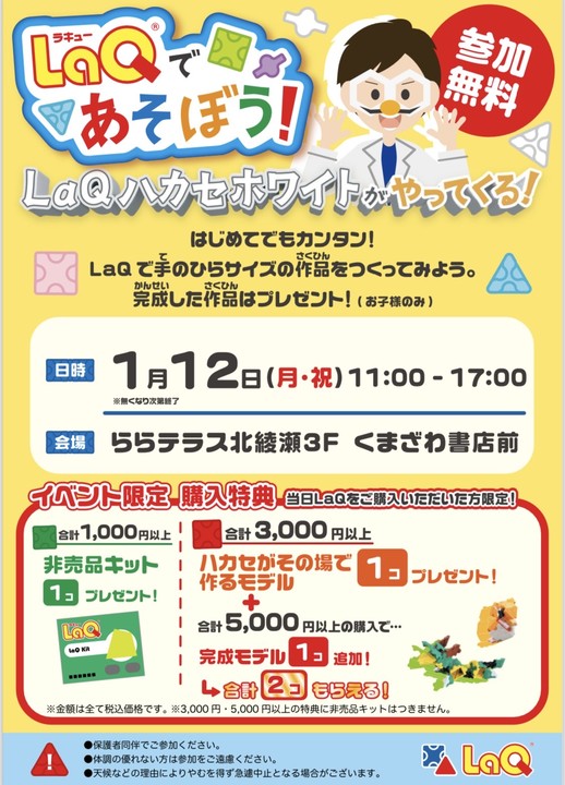 【参加無料】LaQ®(ラキュー) であそぼう!LaQハカセホワイトがやってくる!