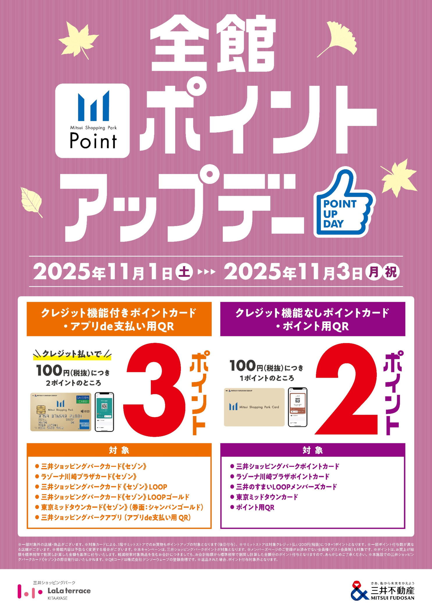 ※本ポイントアップは、三井ショッピングパークポイントが対象となります。