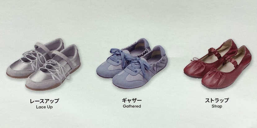 ギャザーバレエスニーカーの他にも、『ストラップバレエスニーカー』、『レースアップバレエスニーカー』がありますので、是非気になる形のものを店頭でお試しください!