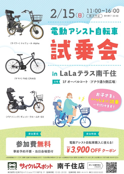 2/15(日)電動アシスト自転車 試乗会