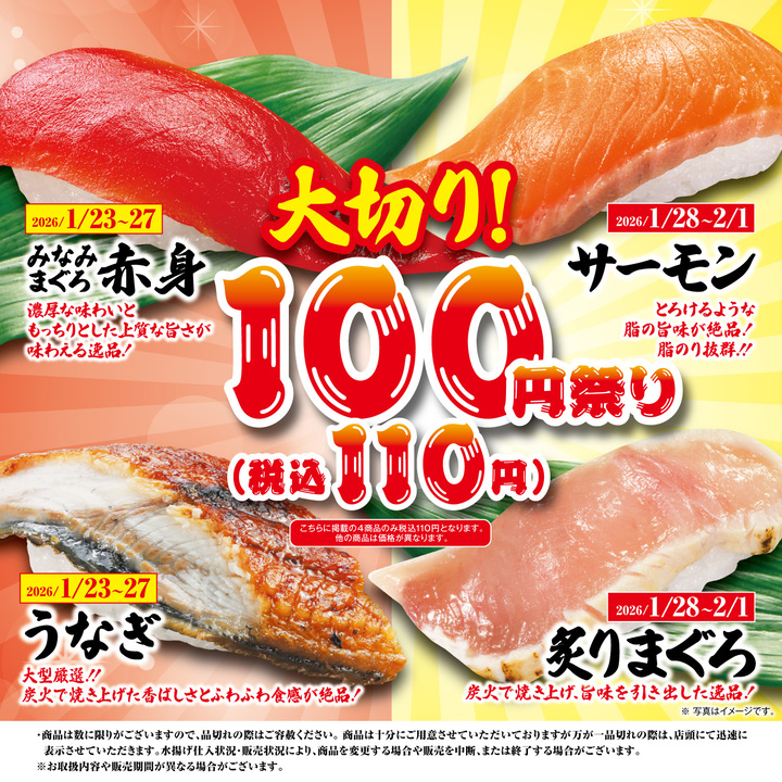 1/23(金)~なくなり次第終了!期間限定「大切り100円祭り(税込110円)」開催!