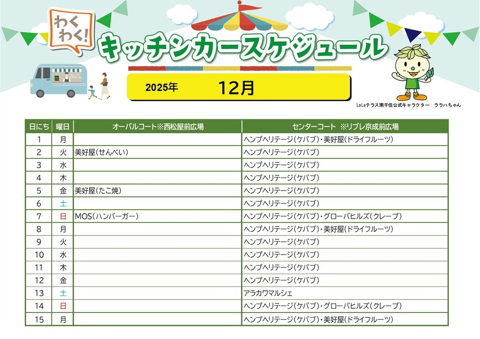 【LaLaテラス南千住】キッチンカースケジュール(12月前半)