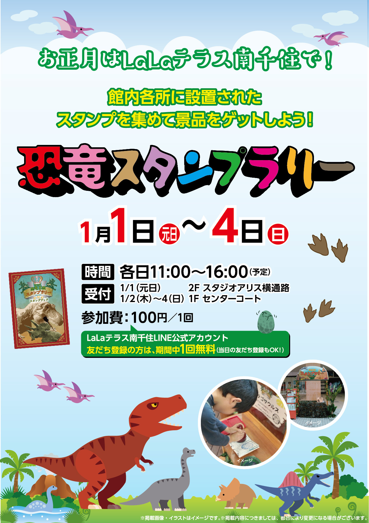 1/1(元日)~1/4(日)お正月はLaLaテラス南千住で♪                  恐竜スタンプラリー