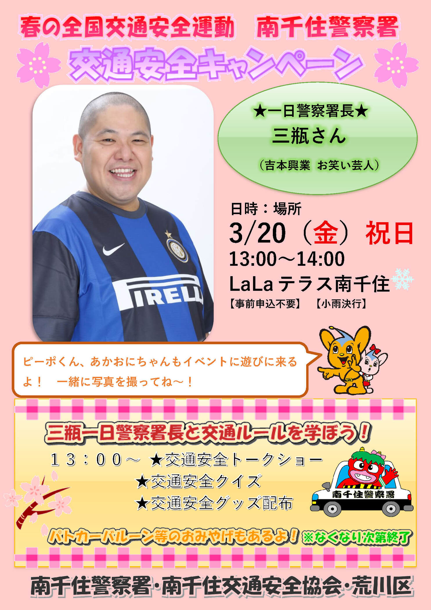 13:00~交通安全トークショー・交通安全クイズ・ 交通安全グッズ配布