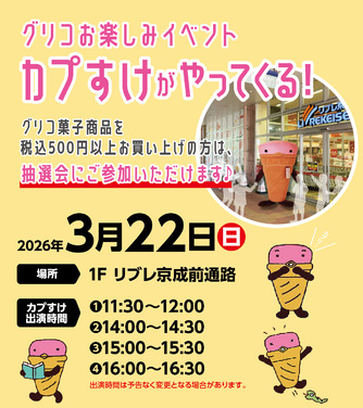 【リブレ京成】グリコお楽しみイベント “カプすけ”がやってくる♪