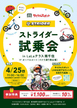 4/25(土)サイクルスポット ストライダー試乗会
