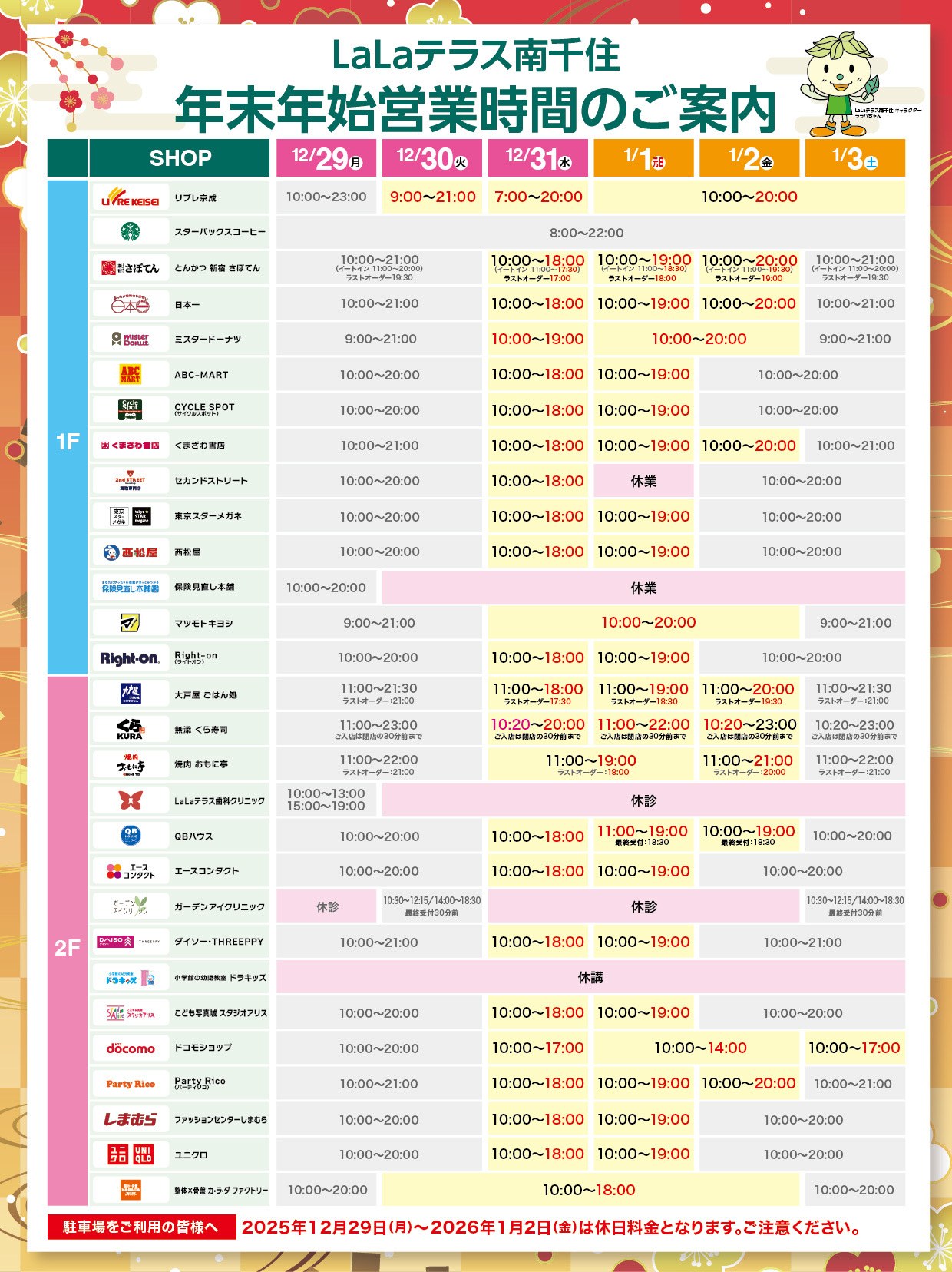 年末年始 営業時間のご案内
