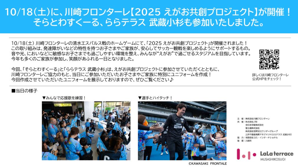 2025/10/18(土)、川崎フロンターレの清水エスパルス戦のホームゲームにて、「2025 えがお共創プロジェクト」が開催されました!