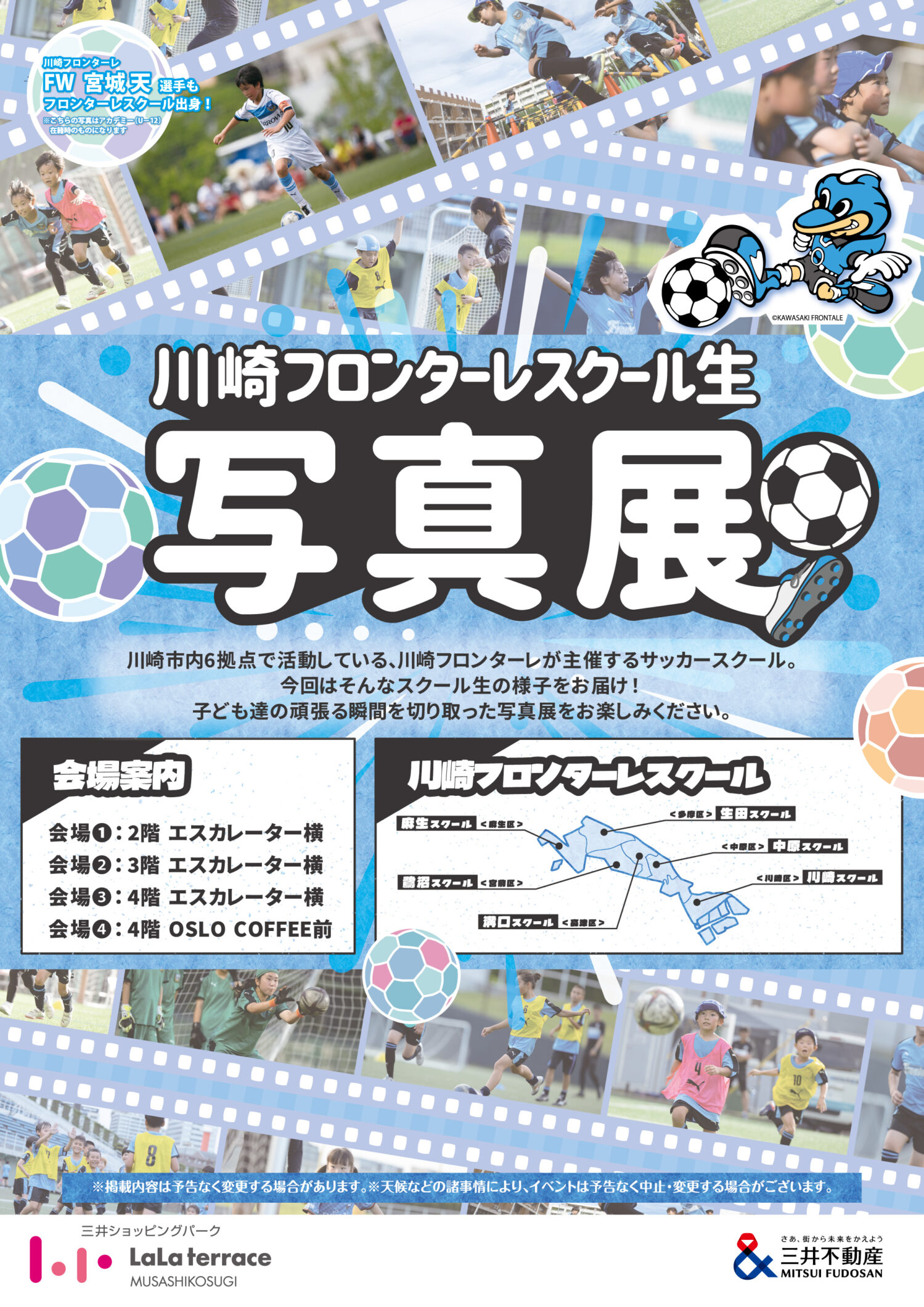 ららテラス武蔵小杉 地域連携の取り組み NEW Posted date:2025.12.26 川崎フロンターレ スクール生写真展 2025/10/25(土)~2026/1/25(日)、ららテラス 武蔵小杉 2F~4Fで、川崎フロンターレ スクール生写真展を開催!川崎フロンターレのクラブオフィシャルカメラマンが撮影したスクール、SSガールズの写真を期間限定で展示。 【主催】川崎フロンターレ、ららテラス 武蔵小杉(三井不動産商業マネジメント株式会社) トップに戻る