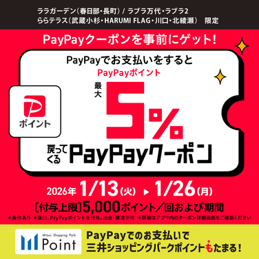PayPayポイント最大5%戻ってくるクーポン発行中! (クーポンの適用は1/13~)