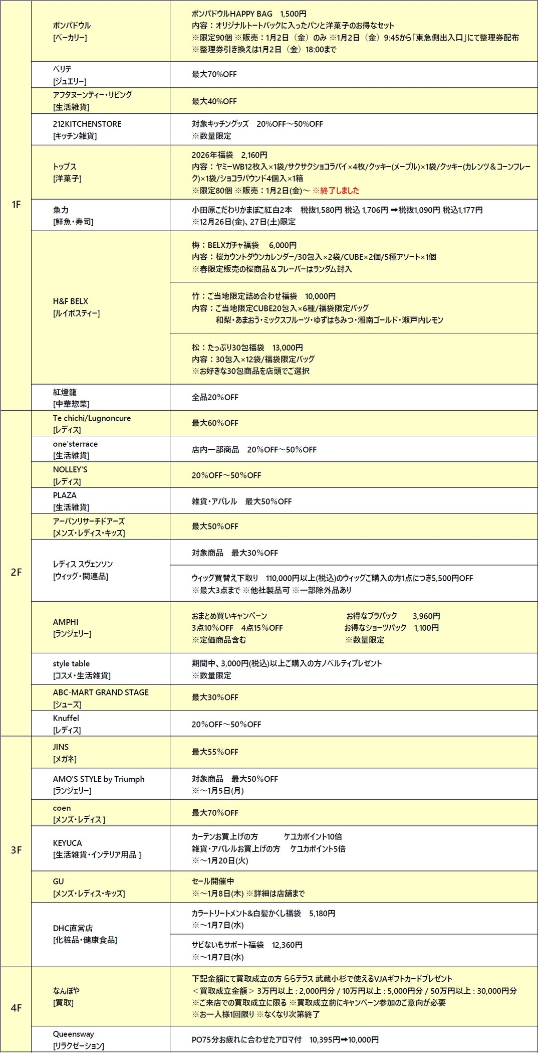 ※店舗により掲載内容が期間中に変更となる場合がございます。最新情報をご確認ください。