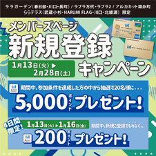 - 【予告】メンバーズページに初めてご登録いただき条件を達成すると、抽選で5,000ポイントが当たる!
