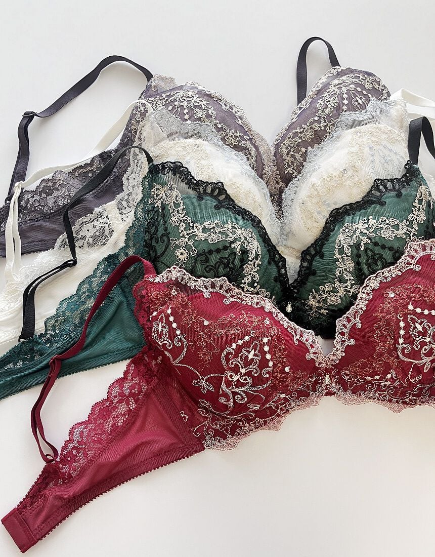 今作は、クラシカルなオーナメント柄をゆったりとあしらったエンブロイダリーレースのグループ。