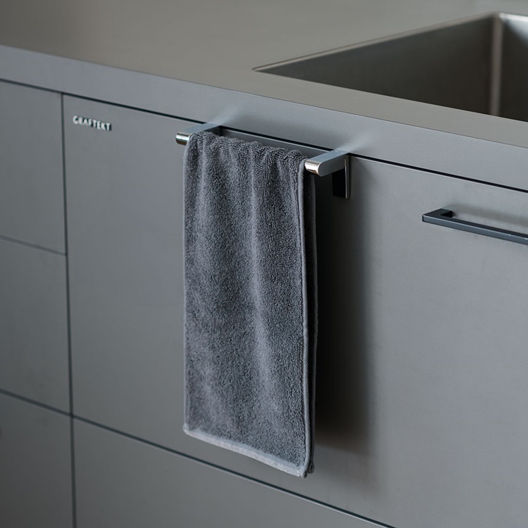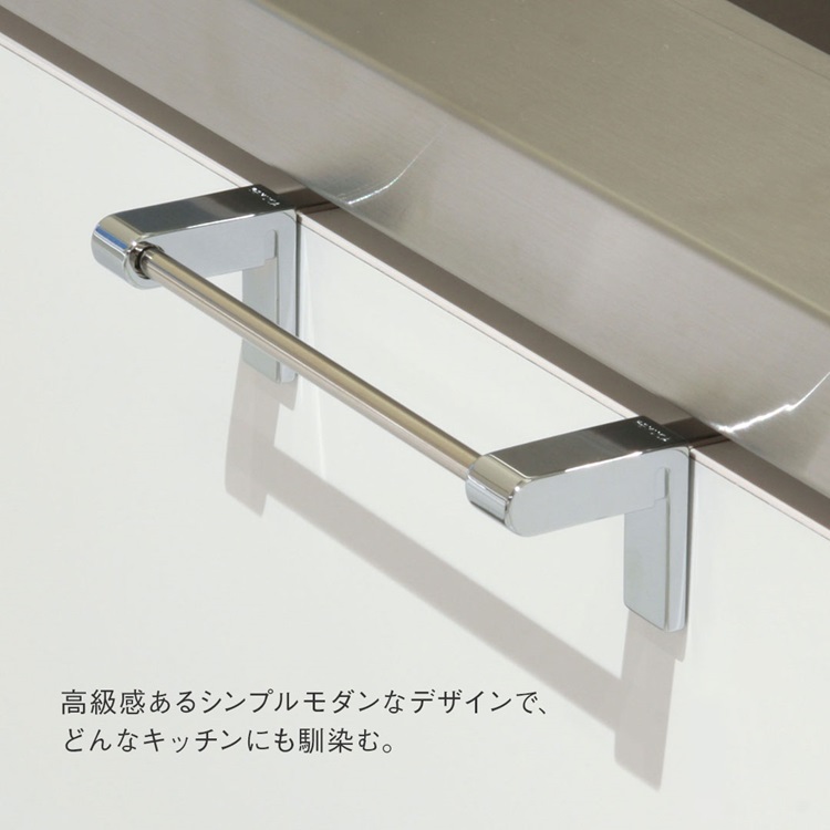 まるで、初めからキッチンに付いていたかのように、どんなキッチンにもしっくりとなじむタオルハンガーです。