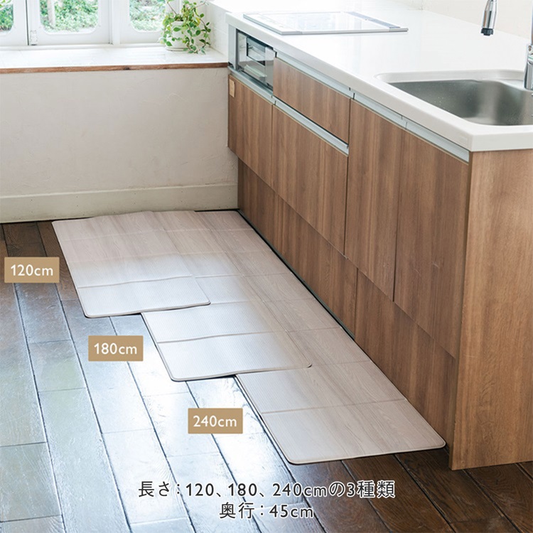 お手入れ簡単、抗菌・防カビ・防炎機能のあるキッチンマット