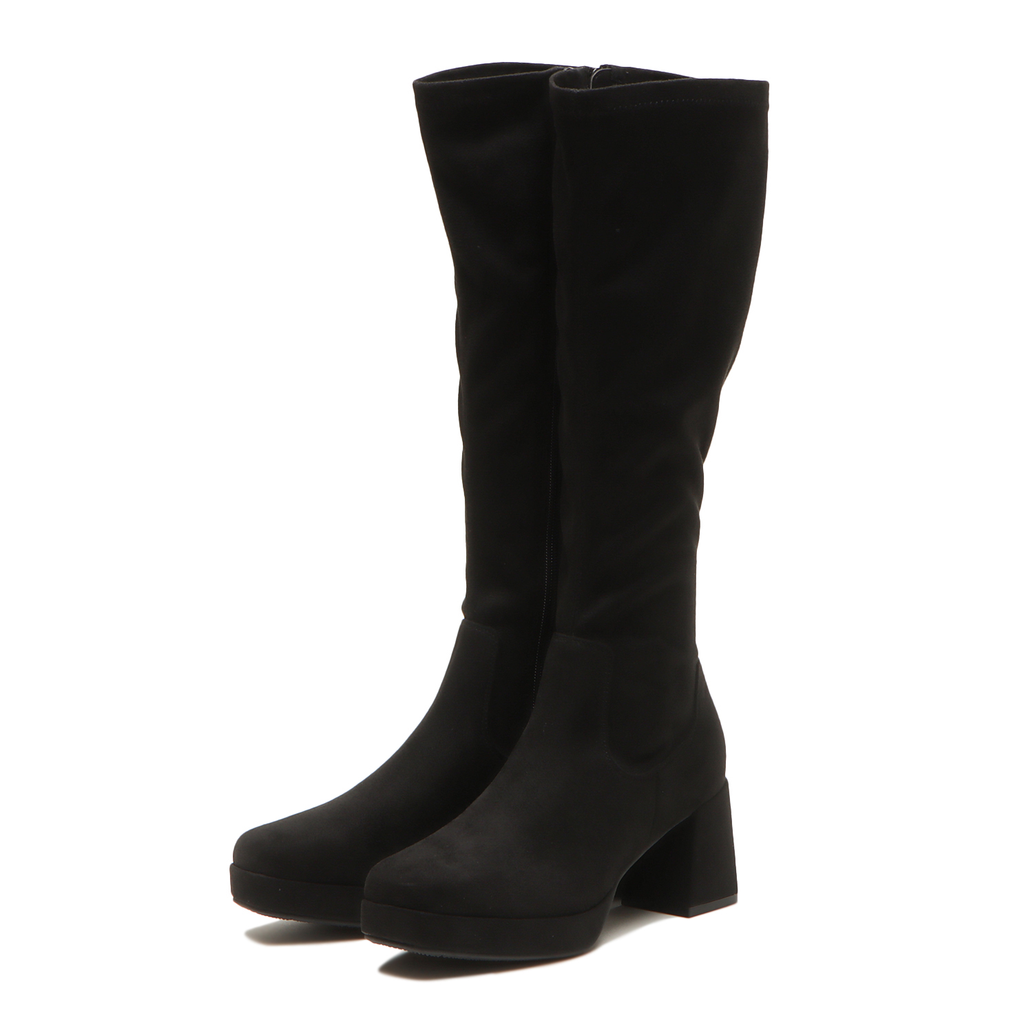 7.5cmヒールにストーム付きで傾斜が少なくて履きやすいストレッチロングブーツ。