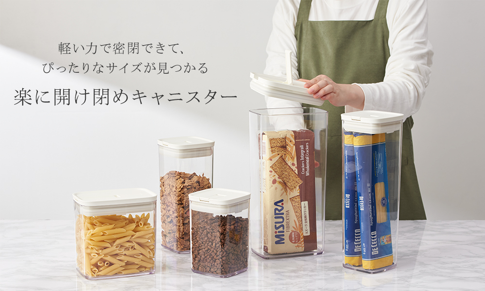 『軽い力で密閉できる、楽に開けしめキャニスター』