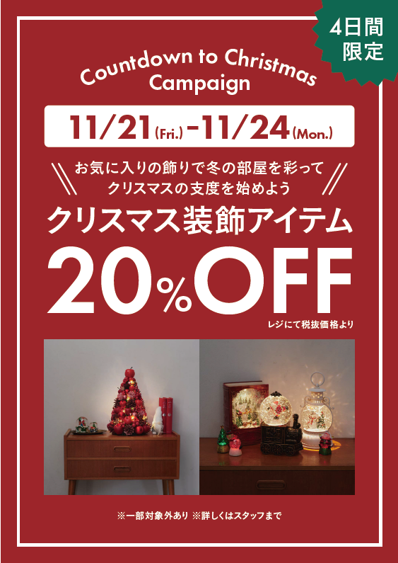 - 【11/21~24】クリスマス装飾アイテム 20%OFF!