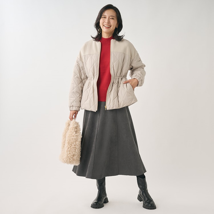 ■ きれい見えしつつ着心地も◎のダンボールとキルティングの異素材アウター