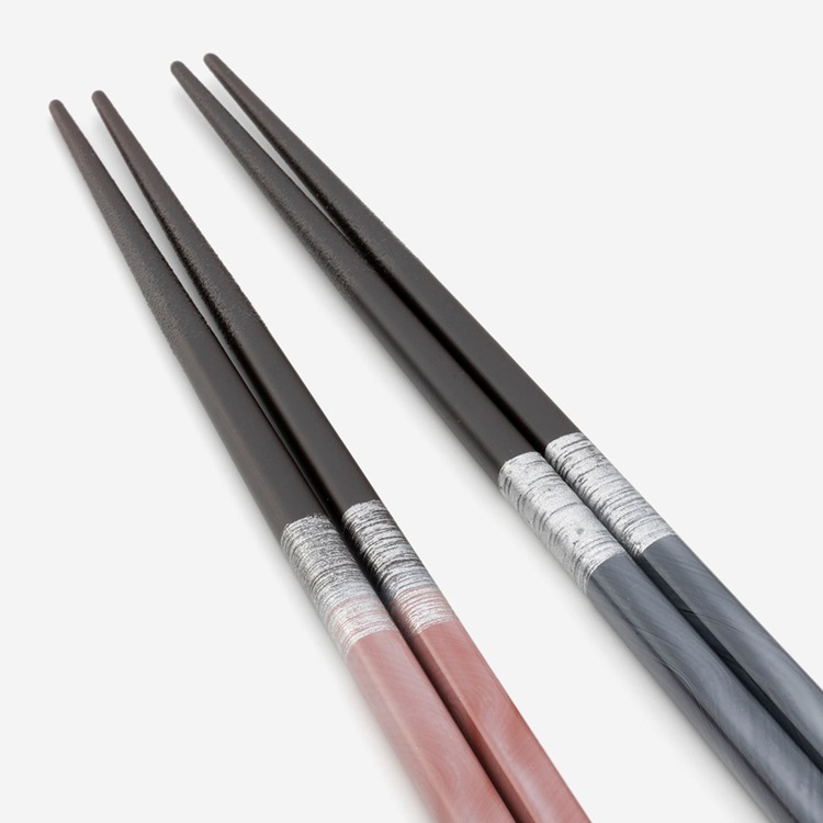 黒と赤を基調に、白い線が緩やかに流れるようなデザインを施した箸。