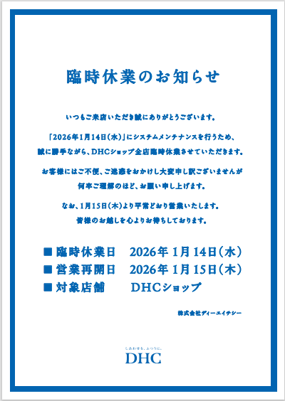 誠に勝手ながら、D H Cショップ全店臨時休業させていただきます。