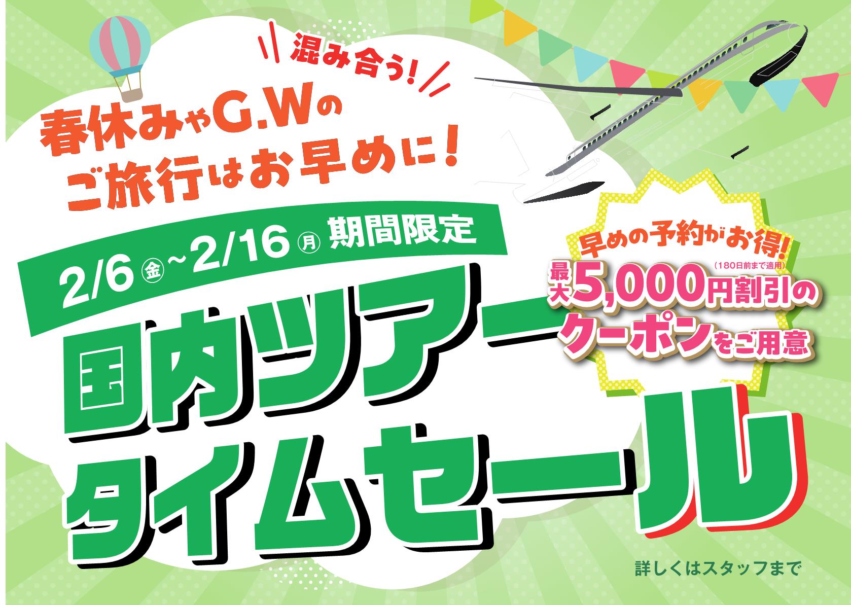 HISでは2/6~2/16の期間限定で国内ツアータイムセールを開催中!