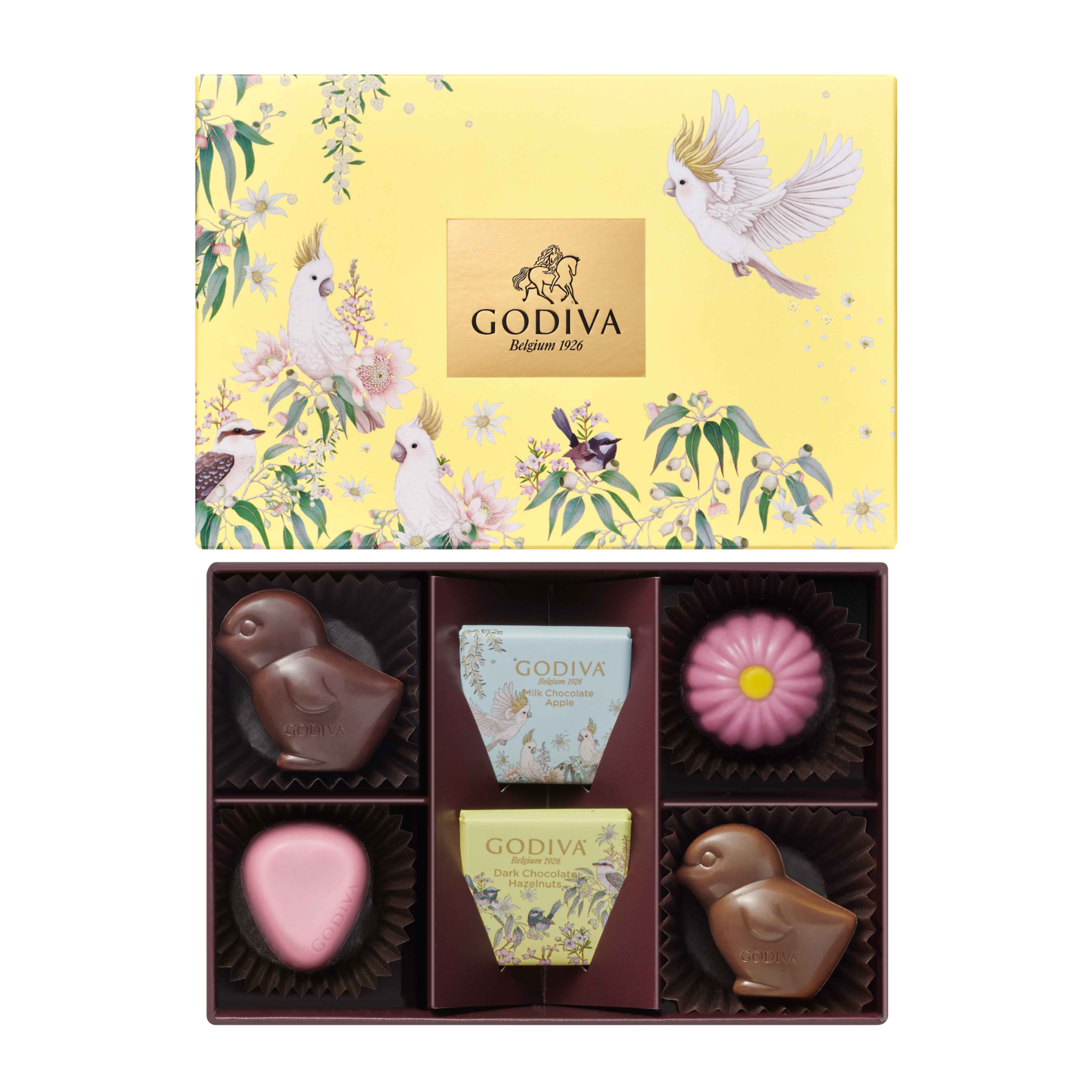 春らしい色とりどりの花とウサギが描かれたフェアリーな世界観あふれるパッケージに、心躍るチョコレートと限定のカレを詰め合わせました。おめでとうを伝えるギフトや季節のご挨拶におすすめです。