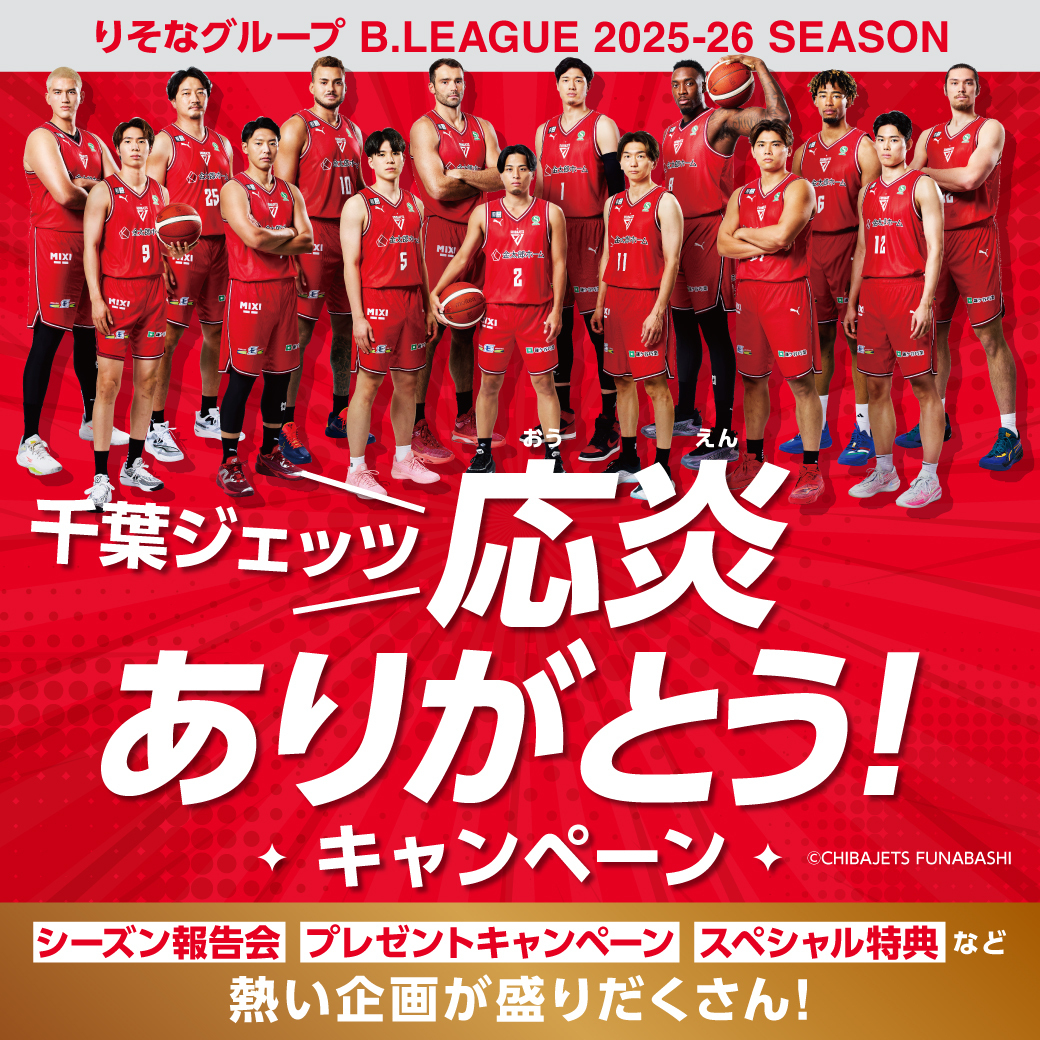 RESONA GROUP B.LEAGUE 2025-26 SEASON 千葉ジェッツへの熱い応炎に感謝を込めて、『千葉ジェッツ応炎ありがとう!キャンペーン』を開催!様々な特典やキャンペーン、イベントをご用意しました!