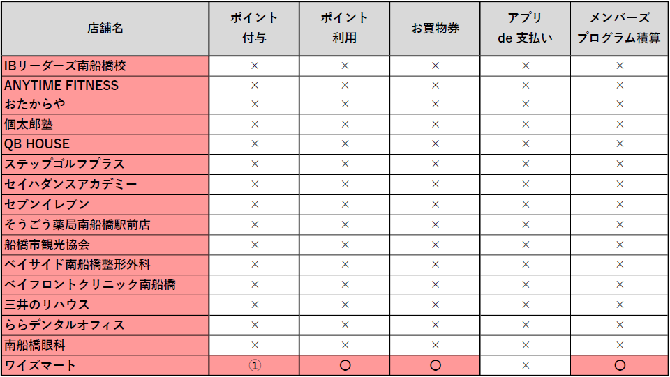 上記ショップは三井ショッピングパークポイント、お買物券の取扱い、アプリde支払い、メンバーズプログラム積算のサービスが異なります。
